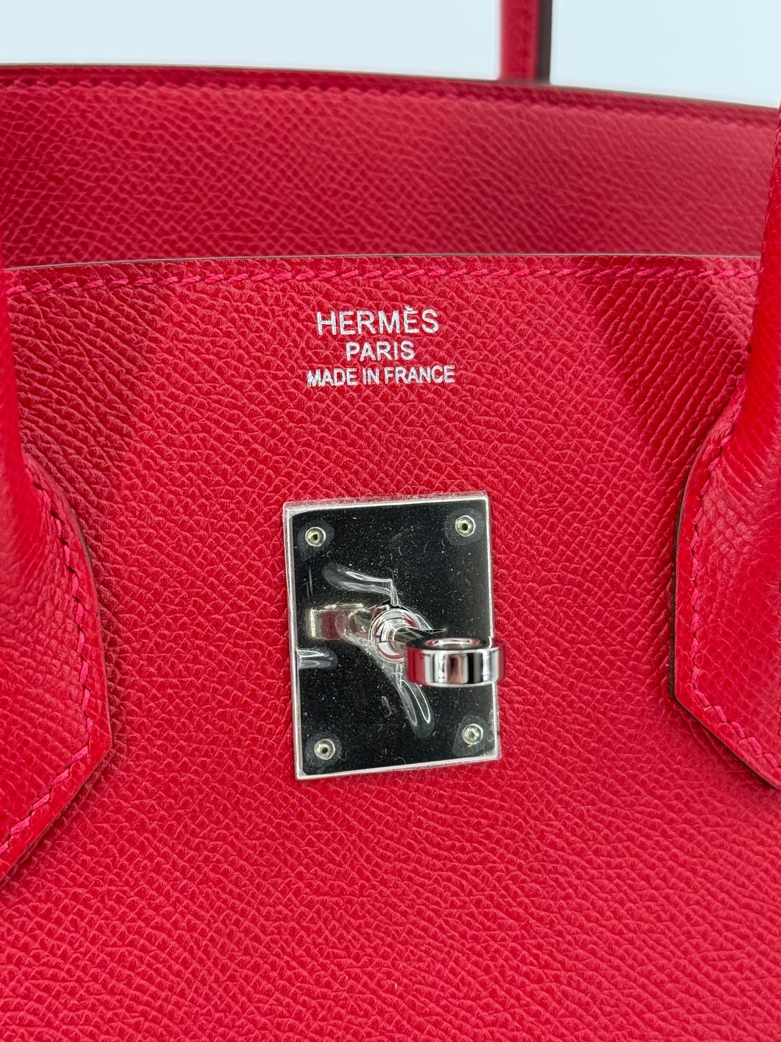 Hermès Birkin 35 Rouge Casaque Epsom Palladium Hardware.