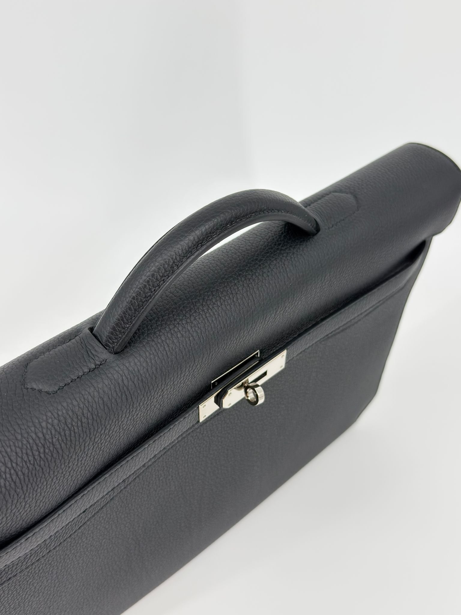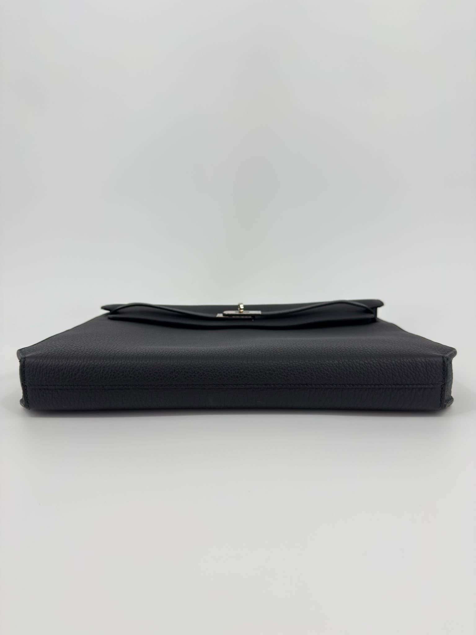 Hermès Kelly Dépêches 36 is a refined expression of the house’s understated elegance. Crafted in classic Noir, the minimalist silhouette highlights Hermès’ impeccable leather craftsmanship while offering a timeless, professional appeal. Designed as a structured portfolio-style case, the Kelly Dépêches seamlessly blends functionality with luxury.