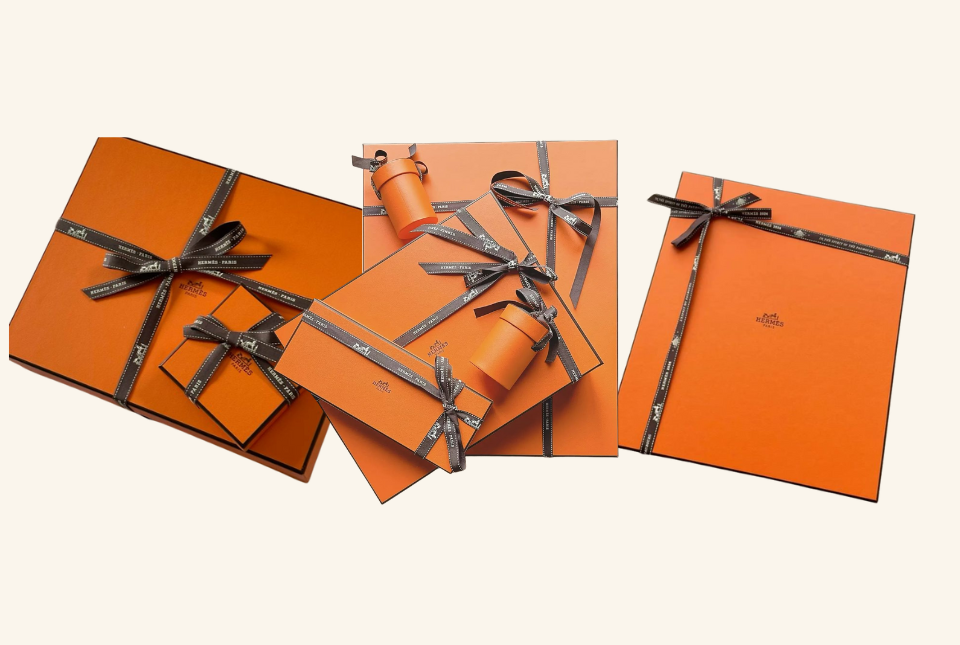 Over the decades, the orange box evolved into one of the most recognizable symbols in the luxury world. Each box is carefully crafted, using rigid cardboard and a precise shade known internally as “orange Hermès.” The brown edging and the iconic logo stamped in crisp black complete what collectors now consider part of the Hermès experience — a keepsake in its own right.